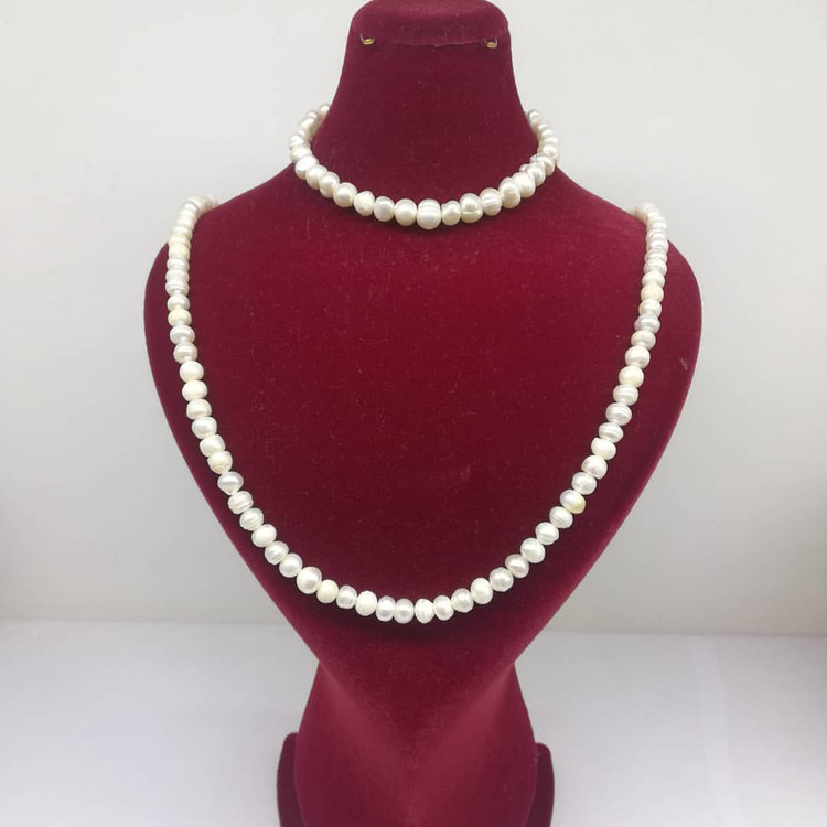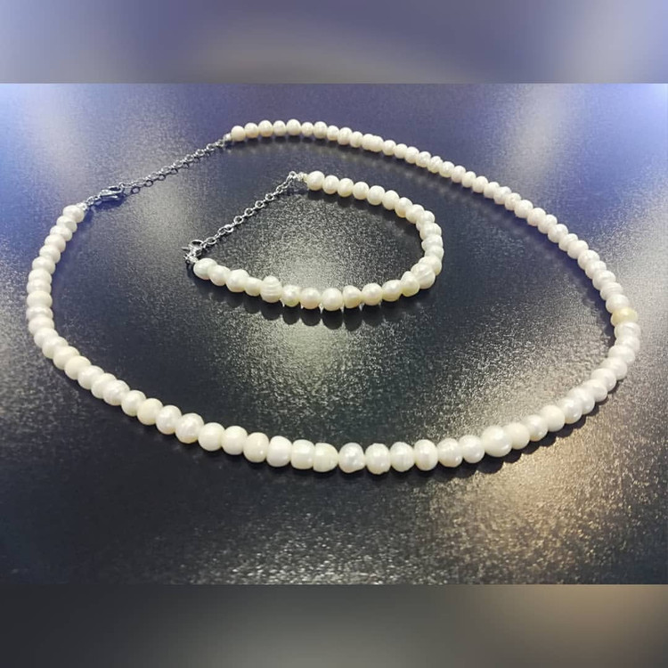 نیم ست گردنبند و دستبند مروارید پرورشی