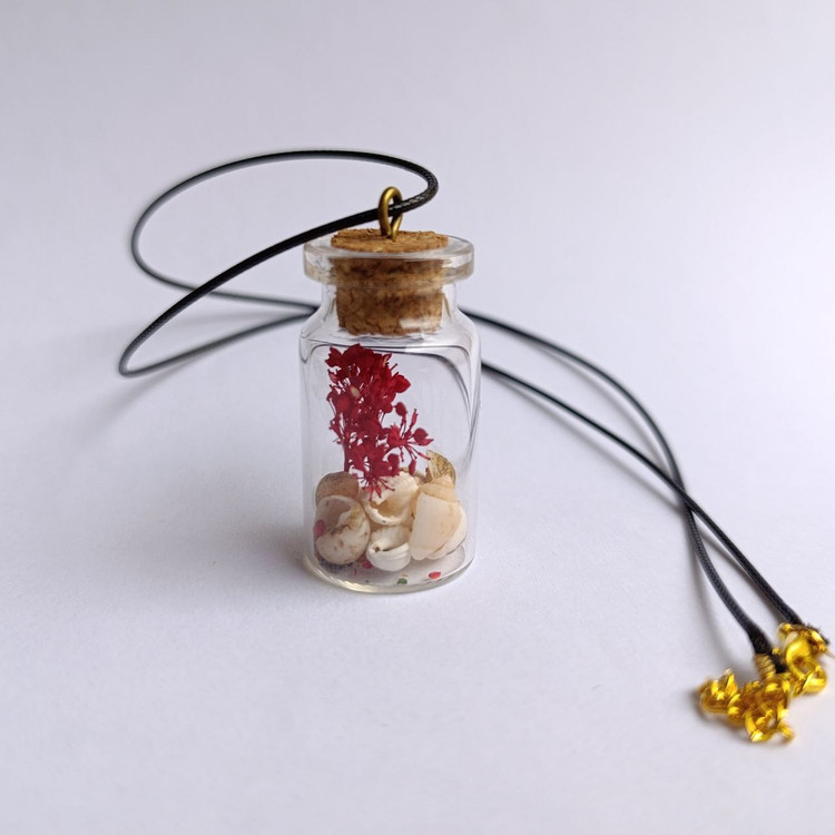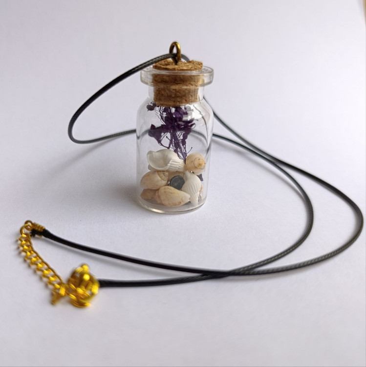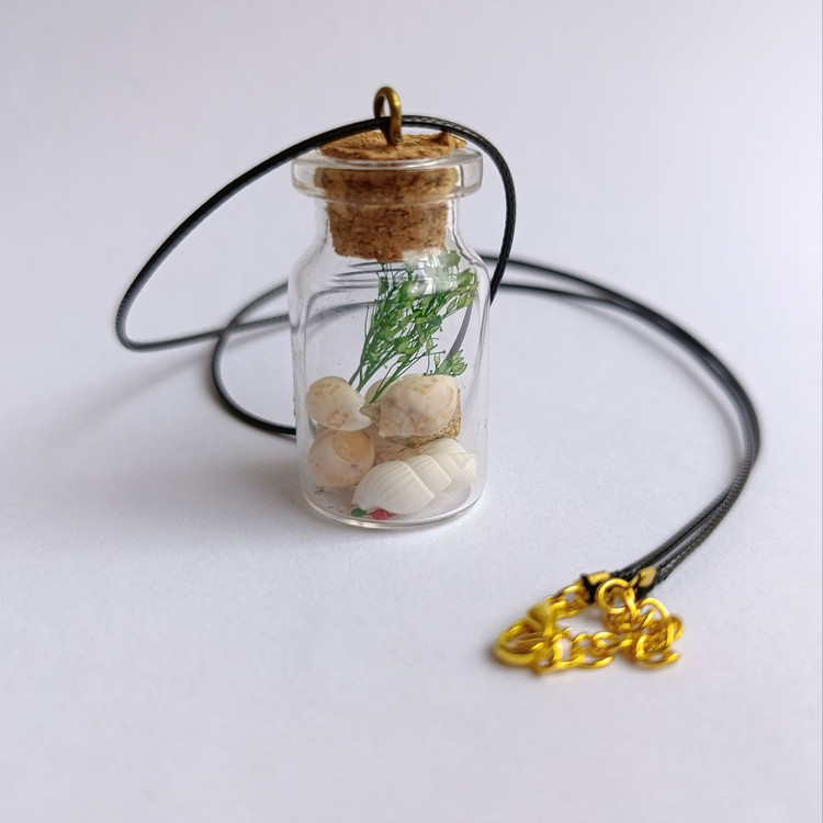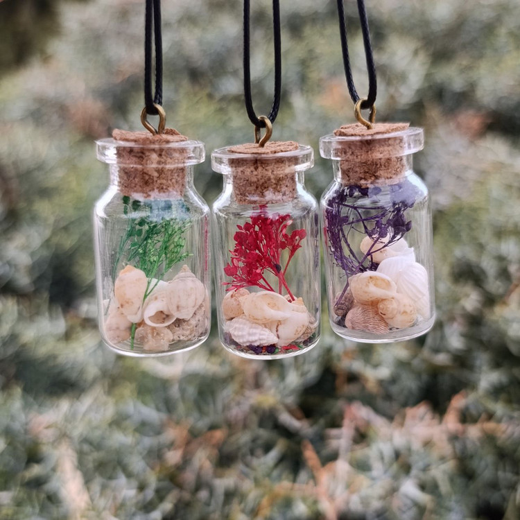 از این کار میتوان به عنوان هدیه های کوچک استفاده کرد.درون شیشه با صدفهای کوچک طبیعی و گیاه خشک شده تزیین شده است.